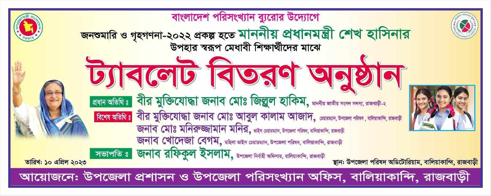 মাননীয় প্রধানমন্ত্রীর উপহার হিসাবে ট্যাবলেট বিতরণ।